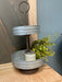 Two tier metal tray with round handle and bronze rustic base. 10” x 19”