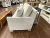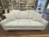 Our Artisan Home Collection presents this off white fabric sofa. This sofa features welted 3 over 3 seat cushions, with a track arm and light stained wide taper legs. Fabric is Arctic and legs are Sesame. Includes two 20" 95/5 blendown fill matching sofa fabric throw pillows. 85"x40"x38.5". Custom fabric and finish options available.