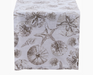 Cloth table runner with soft tan and brown tones. Sea urchin, shells and sand dollar pattern.