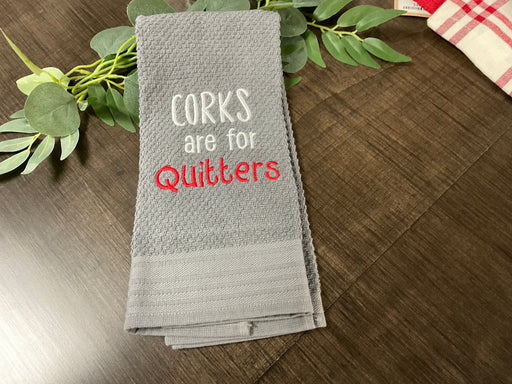 Out of stockEmbroidered dish towel "corks are for quitters." 26”x16”