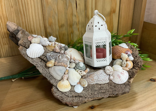 Driftwood and shell candle holder
