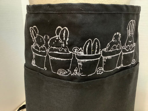 Out of stockCotton fabric apron embroidered with bunnies in flower pots. 23" x 13”