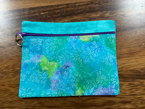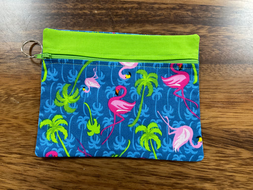 Out of stockCotton fabric purse with attached metal key ring and zippered compartment. 6.5 x 5”
