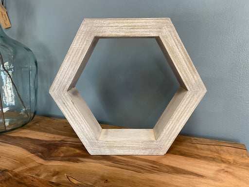 Out of stockHexagon wood wall shelf maple plywood, white washed/dry brushed.