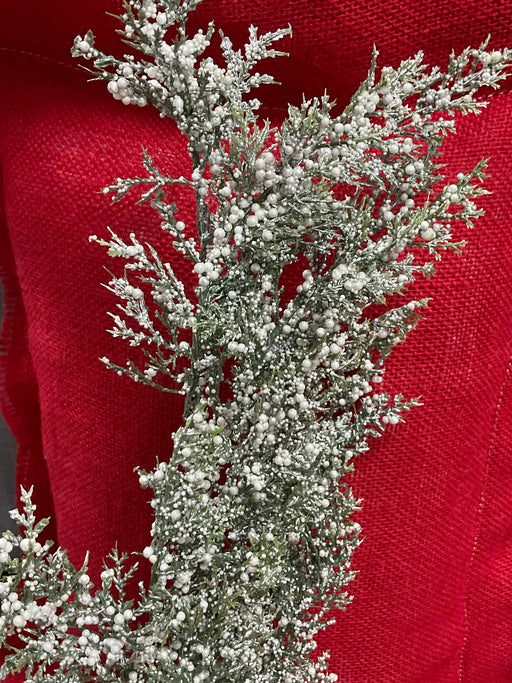 6 in stockFaux greenery with white tiny snow like bubbles approx. size 7” x 20”