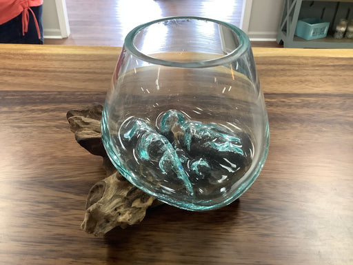 Only 4 left!Molten glass bowl formed on piece of driftwood.