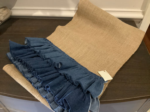 Only 1 left!Burlap runner with denim ruffle. 14”x90”
