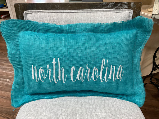 Only 1 left!Embroidered burlap pillow with the phrase “north carolina “. Various colors and sizes.