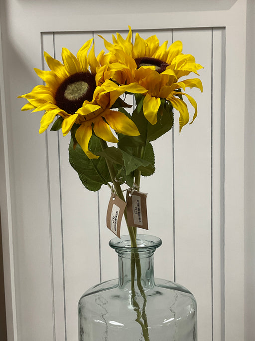 Only 1 left!This beautiful glass vase is grand in scale and made in Spain using recycled glass. Decorative interior use only. 9.5” x 30” clear glass vase