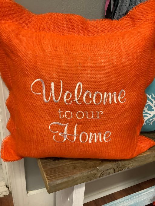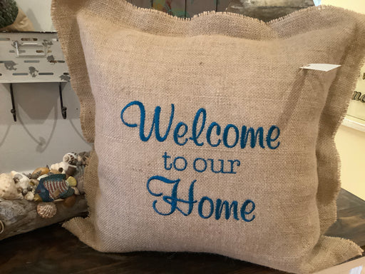 Burlap pillow - welcome to our home