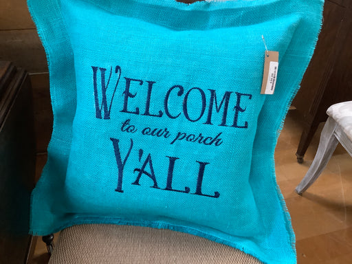 Burlap pillow - welcome to our porch
