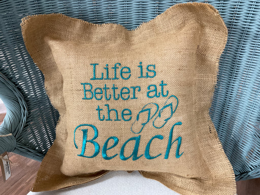 Burlap pillow- Life is better Beach