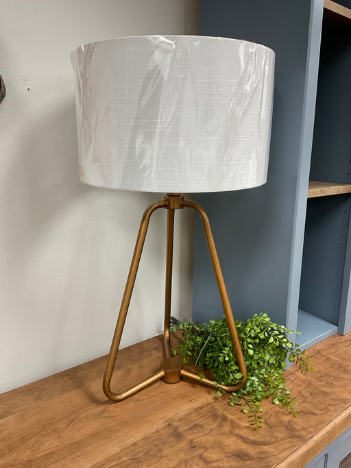 Only 2 left!Brass metal table lamp with white shade 14” x 14” x 25.5”