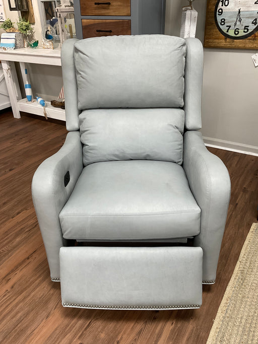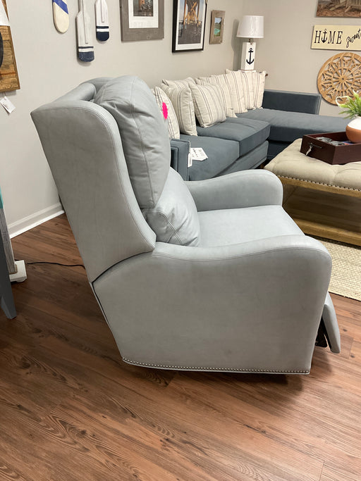 Only 1 left!Artisan Home Collection - Case Leather Swivel/Glide Motorized Recliner. Wild Blu leather fabric with