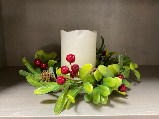 Only 4 left!Faux Ombre boxwood candle ring. 3.5" candle opening, overall 7.5” round. Candle not included.