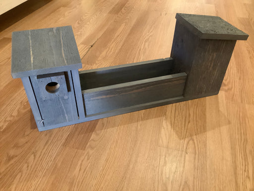 Only 1 left!Cedar birdhouses with planter box in between. Stained gray. 24”x5.5”x10”