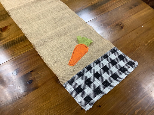 Only 1 left!Burlap runner with carrot and black white check 54 x 12”