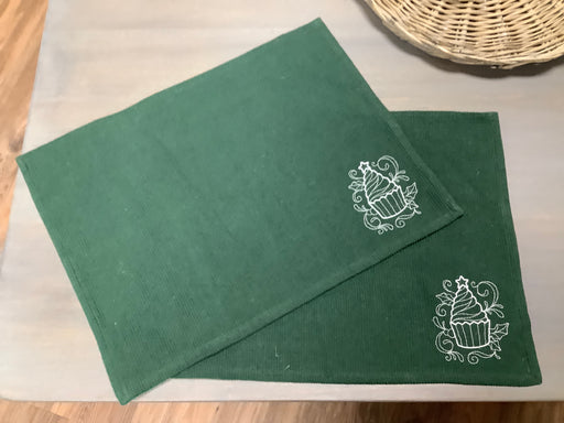 Only 4 left!Christmas embroidered cloth placemat. Green. 17” x 13” - cupcake