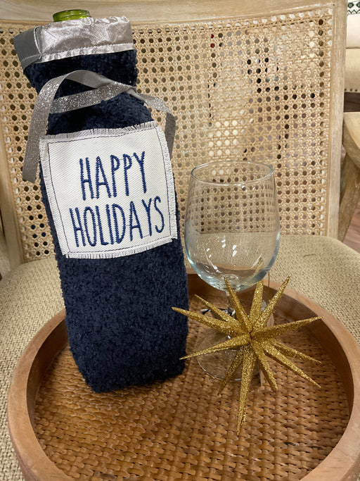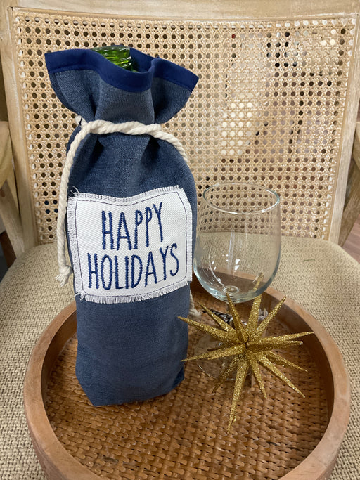 Only 1 left!Fabric wine bag with drawstring in various colors and embroidered with a patch with various Christmas sayings 5.5” x 12”