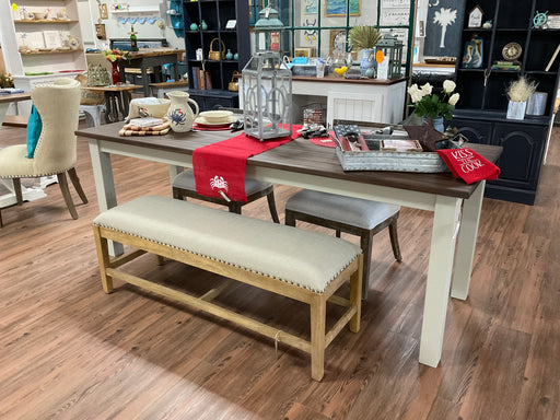 Only 1 left!Hardwood dining table, 83"x30"x31”, Sapele, walnut stained top w/ Ethereal Mood painted frame and legs. Locally made.