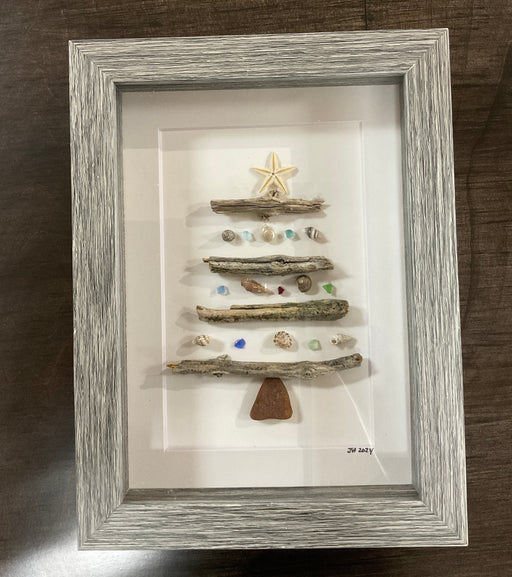 Only 1 left!Wooden tree cutout with a variety of shells 5” x 6”