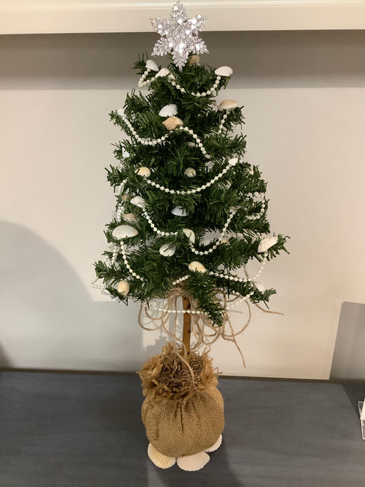 Only 1 left!Faux Christmas tree hand decorated with shells. 7” diameter x 18.5”
