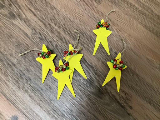 Only 4 left!Christmas star ornament. Yellow w/bells. 4” x 2”