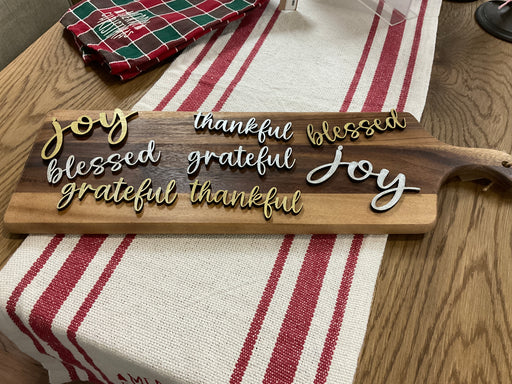Only 3 left!Cut-out wood plate words. Gold or silver. Various sizes: 5” x 1 1/2” and 4 1/2” x 3”