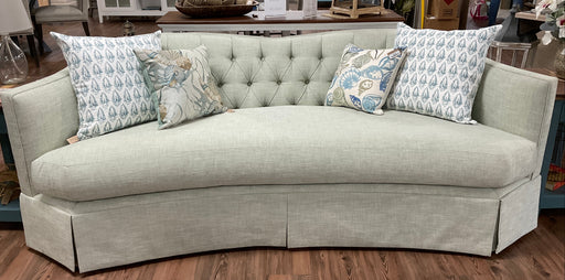 Only 1 left!Artisan Home Collection - Coves mini sofa in Liller laurel fabric. Catalina Down Seat cushions with tufted back and skirting on bottom 87” x 37” x...