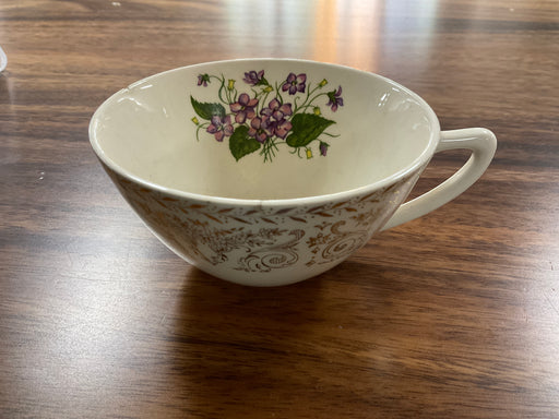 Only 1 left!Vintage teacup with gold filigree and delicate violets by Cunningham and Pickett pattern “Springviolet “. 5.5 x 4 x 2.5”