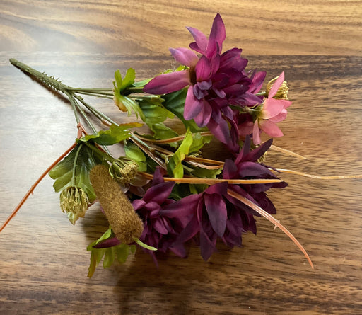 Only 3 left!Faux Fall boxwood bundle, 9” x 3”, green, red, tan