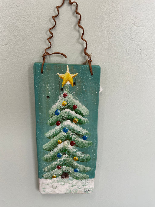 Only 1 left!Hand painted Christmas tree on wood 12 1/2” x 5 1/2” x 3/4”