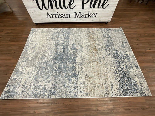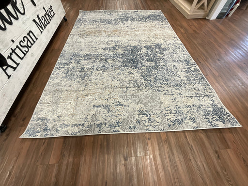 Only 2 left!Area rug in distressed blue, gray and yellow's. Various sizes available.