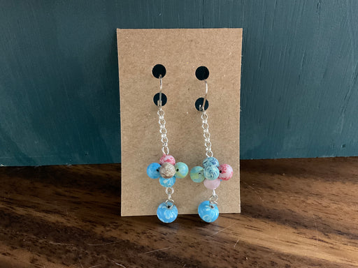 Only 1 left!Cluster of multicolor clay beads on chain and silver lever back earrings handmade by local artist. 2.5” long