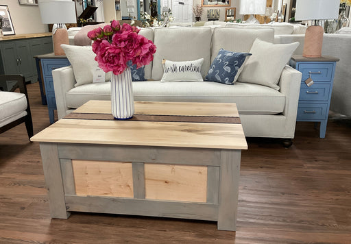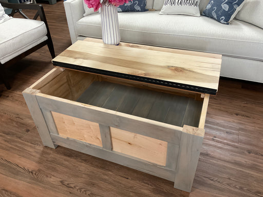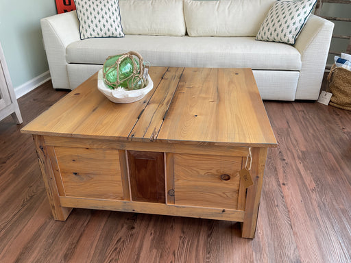 Only 1 left!Our Monroe style coffee table is a double lid top opening trunk with storage. This model is built from repurposed old farmhouse cypress wood. Clea...