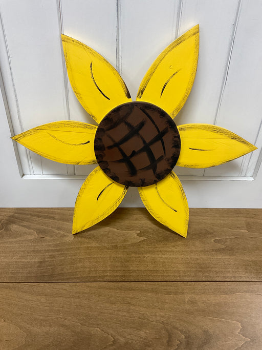 Only 1 left!Hand made and painted wood sunflower. Wall hanger included. 16” round