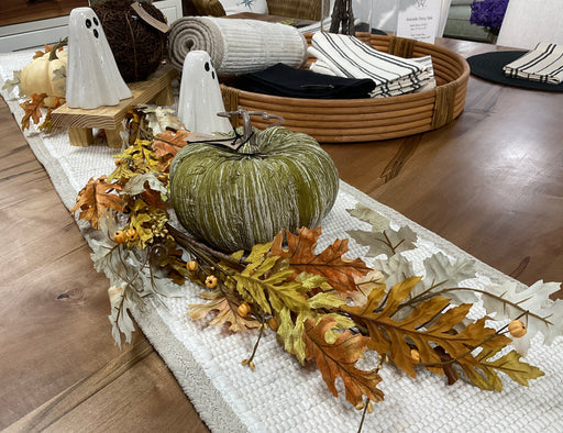 Only 1 left!Faux oak green and orange leaves with tiny pumpkins and acorns 63” in length