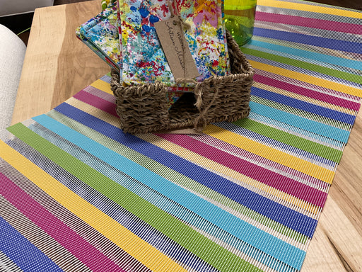 Only 2 left!Multi-color table runner, plastic. 70” x 13”