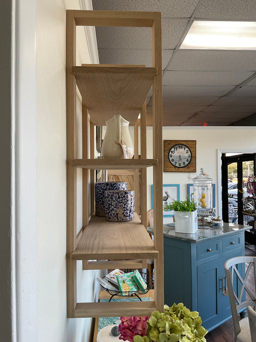Only 1 left!Natural white oak shelf unit with removable shelves. Includes 3 support rings and 3 shelves. Overall size 36” x 11” x 36”