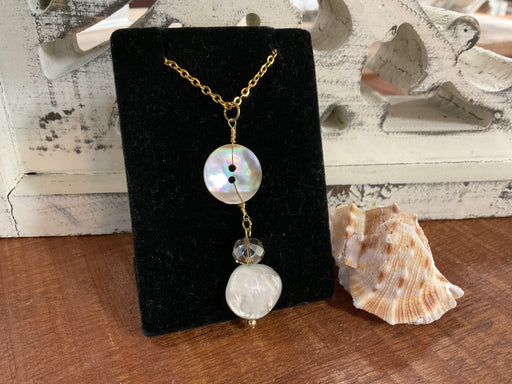 Only 1 left!Hand made Mother pearl button and bead necklace