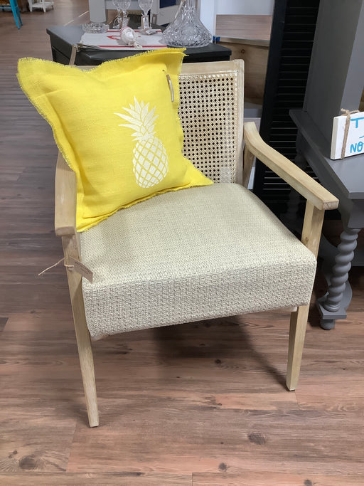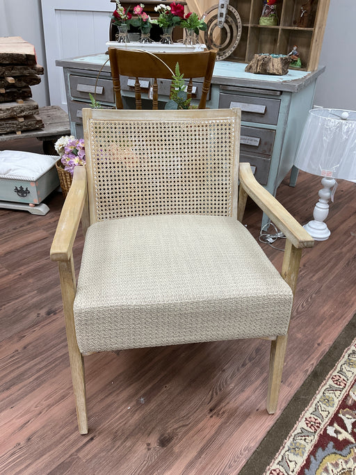 Only 1 left!Wood armchair with Cane inset back. 24"x24"x30". Seat 18"