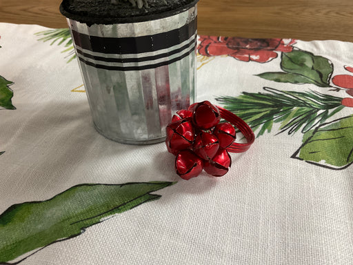 Only 2 left!Red metal jingle bells clustered on napkin ring. 3 x 2”