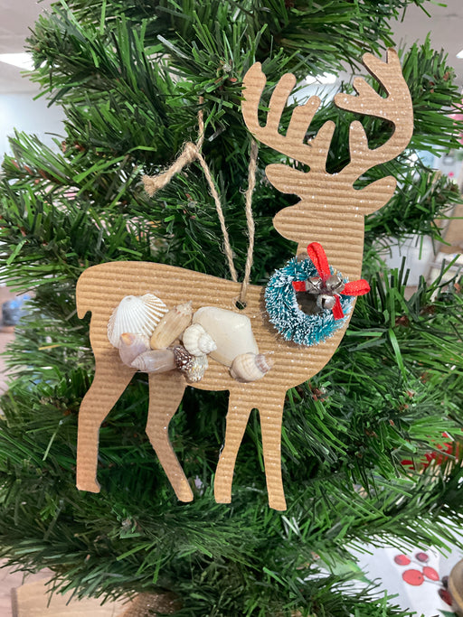 Only 1 left!Reindeer cutout made of card stock decorated with shells and a Christmas wreath 4” x 7”