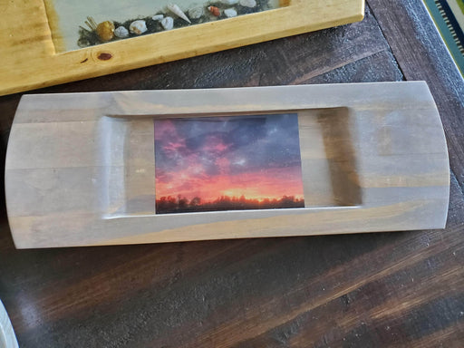 Only 1 left!Rustic wood frame with easel back. Horizontal or vertical stand.