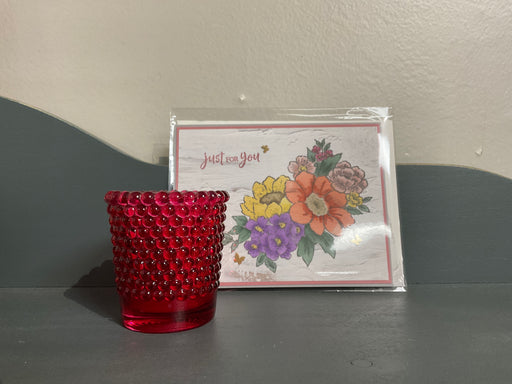 Only 1 left!Red glass candle votive - 2 1/2”x2”