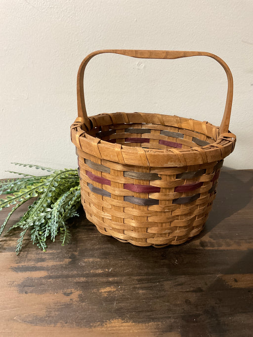 Only 1 left!Wood woven basket with multi color stripes. 8” round x 9” tall