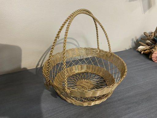 Only 1 left!Two handle round vintage brass wire basket from Japan. 9" diameter x 9”