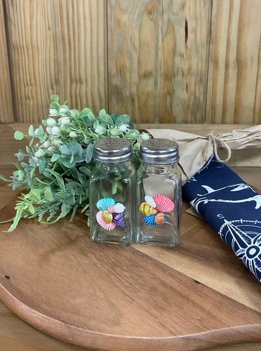 Original price $10.00 - Original price $10.00Original price$10.00$10.00 - $10.00Current price $10.00| /Salt & pepper shaker with shellsOnly 1 left!Glass salt and pepper shaker set hand decorated with multi color baby shells. 1.5”x1.5”x4” Original price $10.00 - Original price $10.00Original price$10.00$10.00 - $10.00Current price $10.00| /