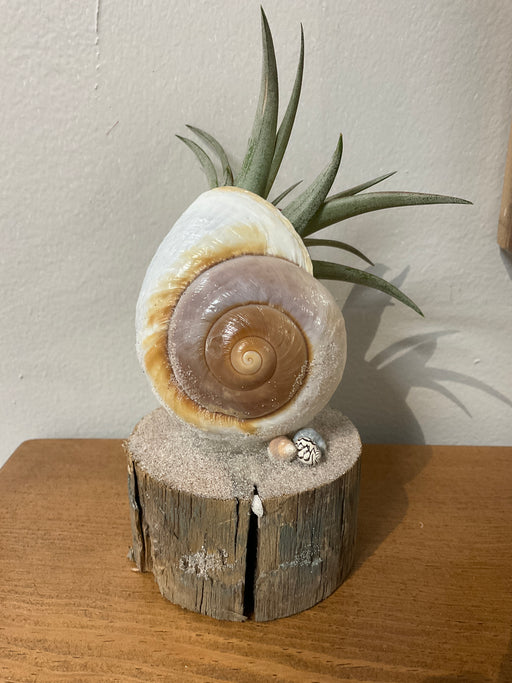Only 1 left!Snail shell secured on wood base, use as an air plant holder or decor. Air plant not included. 3”x5”