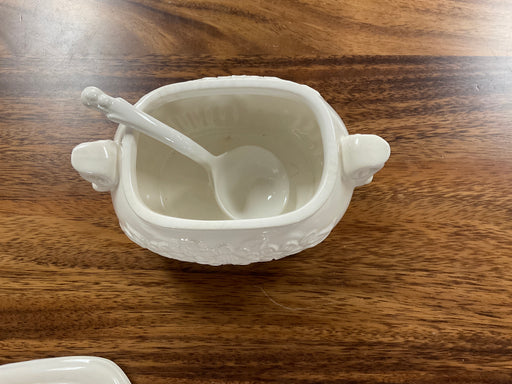 Only 1 left!White porcelain soup tureen dish with soup ladle. Made in Japan. 7”x7”x4”